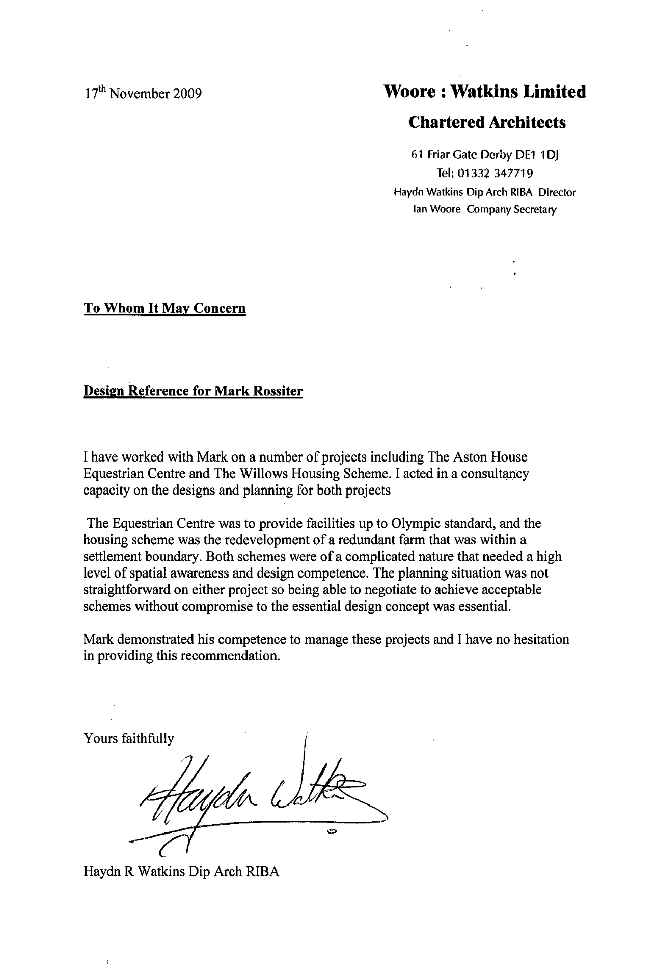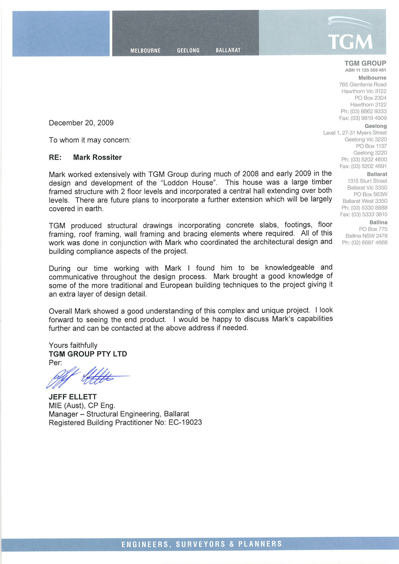 "Again very happy with the delivered paperwork and would recommend Mark professionally for his capacity in both design and business practice."